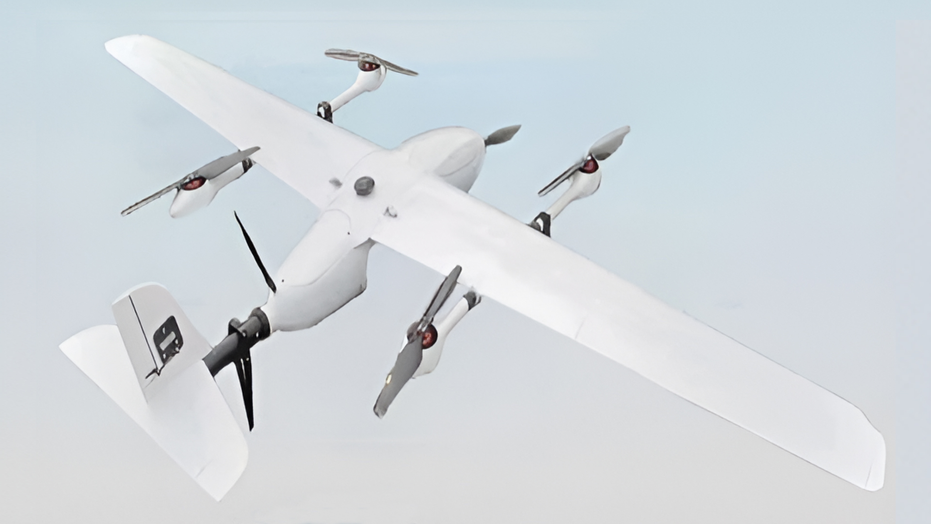 Fixed-wing Vertical Takeoff and Landing (VTOL) Unmanned Aerial Vehicle (UAV) with adaptable powertrain configuration allowing operators to select between pure electric, pure fuel, or hybrid power systems based on mission requirements. This innovative design enables minimal takeoff and landing requirements while maintaining full operational versatility across diverse mission profiles.
